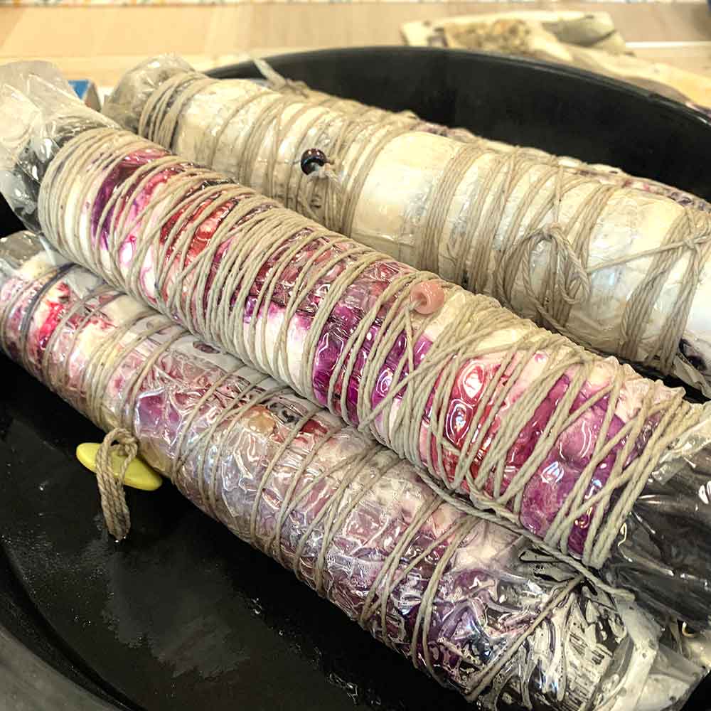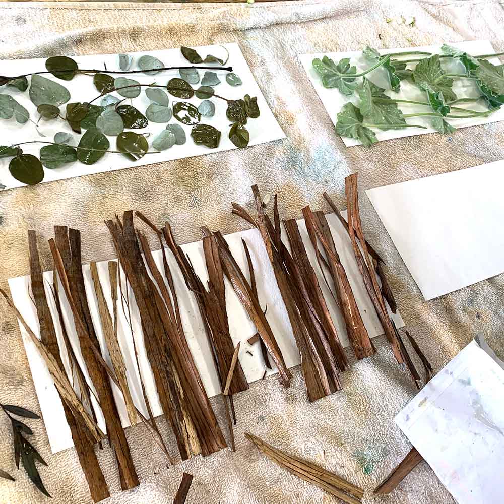 Our approach to eco-printing will be safe and relatively non-toxic. All ‘cooking’ is done outside with plenty of fresh air.