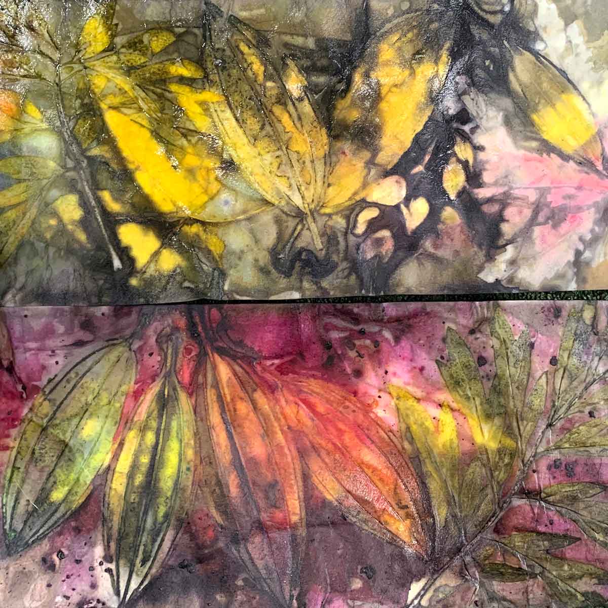 A peek at eco-printed papers from recent workshops
